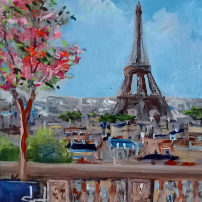 This unique and original contemporary artwork "Vue sur la tour Eiffel " on the subjects of Landscapes, Life style, Urban has been created by the contemporary artist Degabriel Véronique.