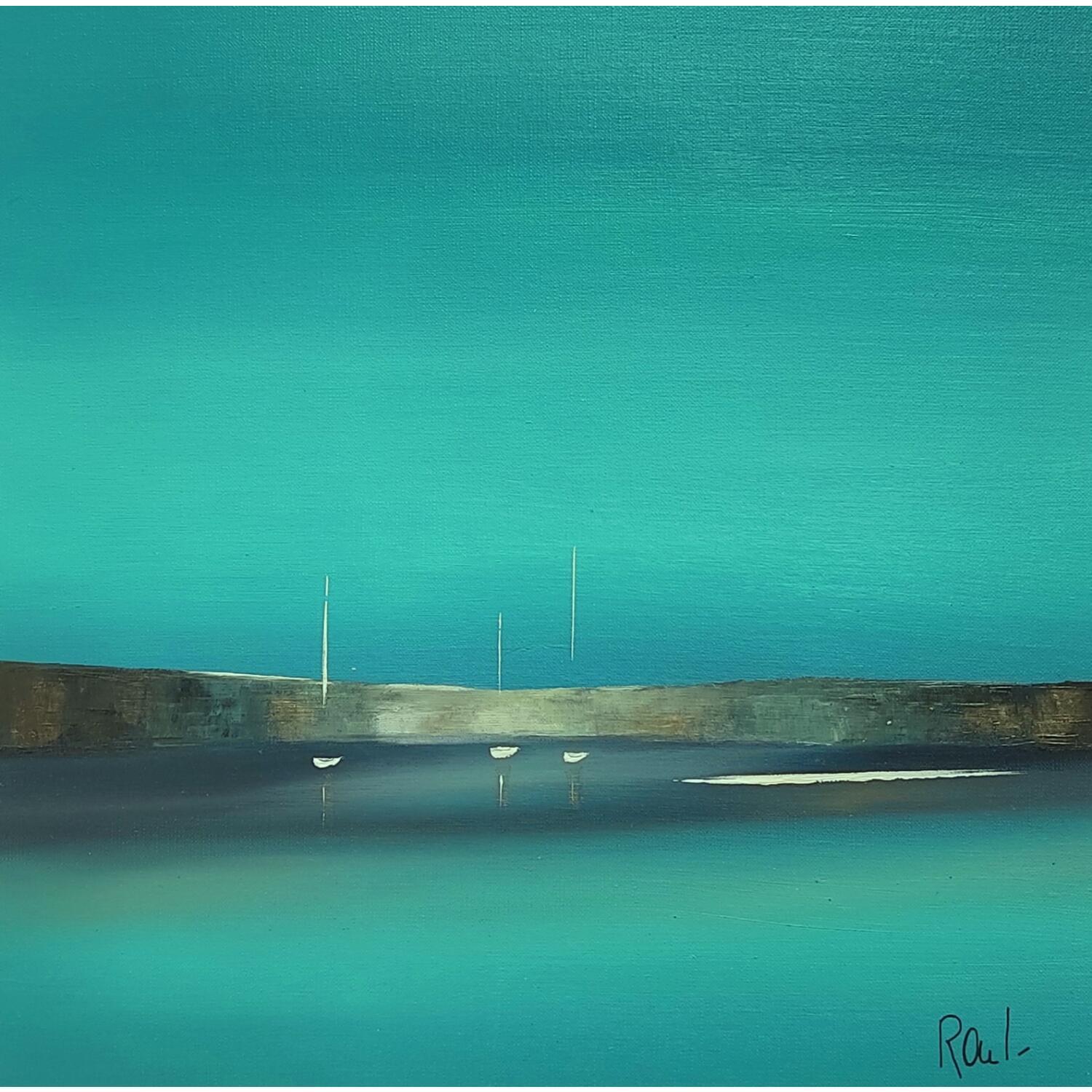 This unique and original contemporary artwork "Symphonie azur 32" on the subjects of Landscapes, Minimalist, Marine has been created by the contemporary artist Roussel Marie-Ange et Fanny.