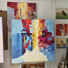 The artist used Oil medium on Canvas to create this Impressionism, Large size painting.
