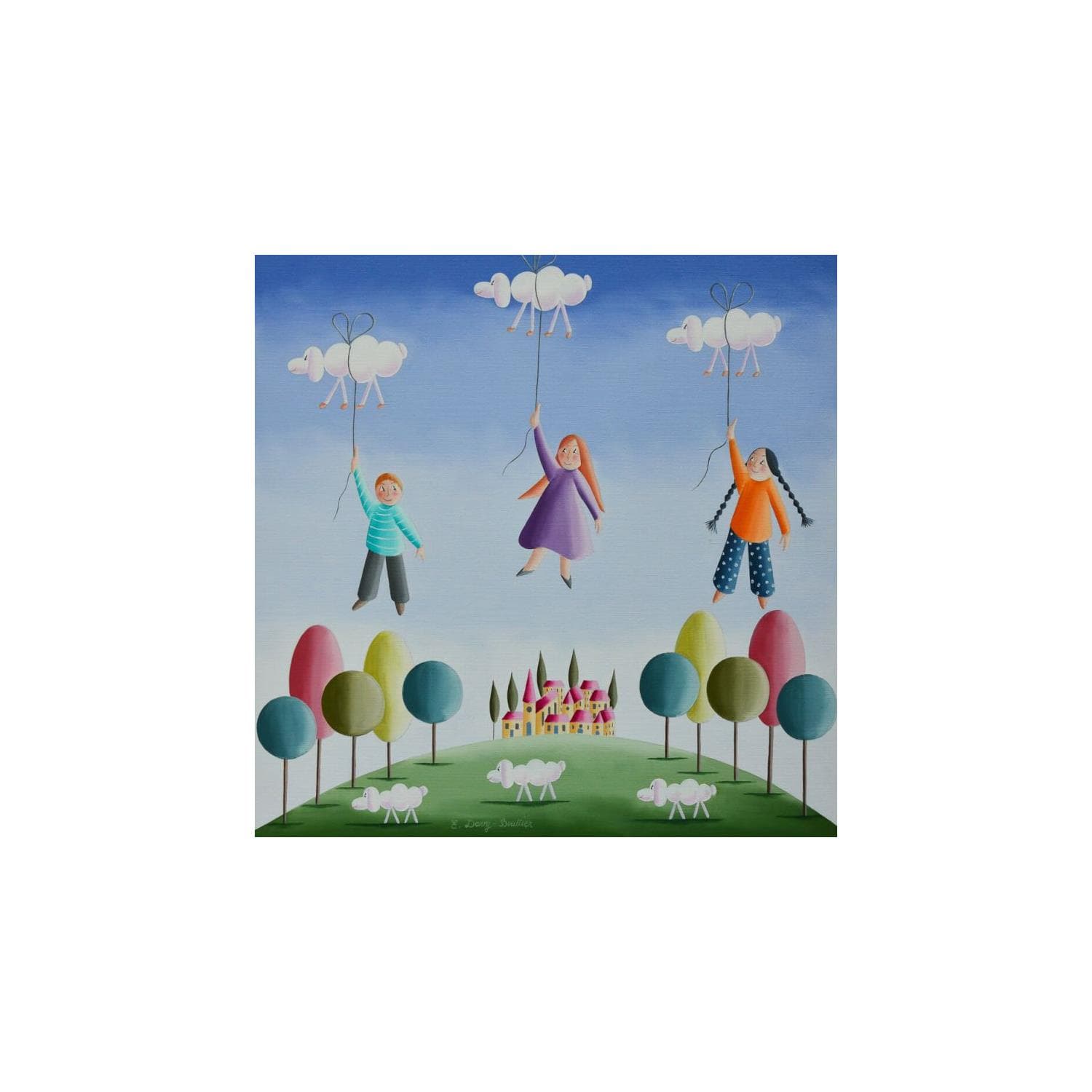 Vol' moutonsPainting Vol' moutons by Davy Bouttier Elisabeth | Painting Naive art Life style Oil