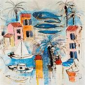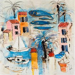 This unique and original contemporary artwork "Port en mediterranée" has been created by the contemporary artist Colombo Cécile.