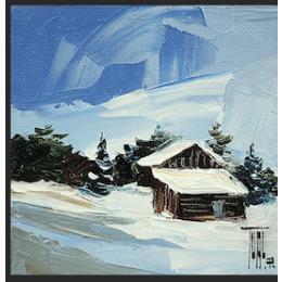 This unique and original contemporary artwork "CHALETS SOUS LA NEIGE" has been created by the contemporary artist Tual Pierrick.