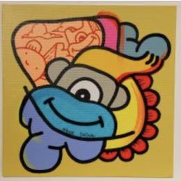 The artist used Acrylic, Posca media on Canvas to create this Pop-art, Small size painting.