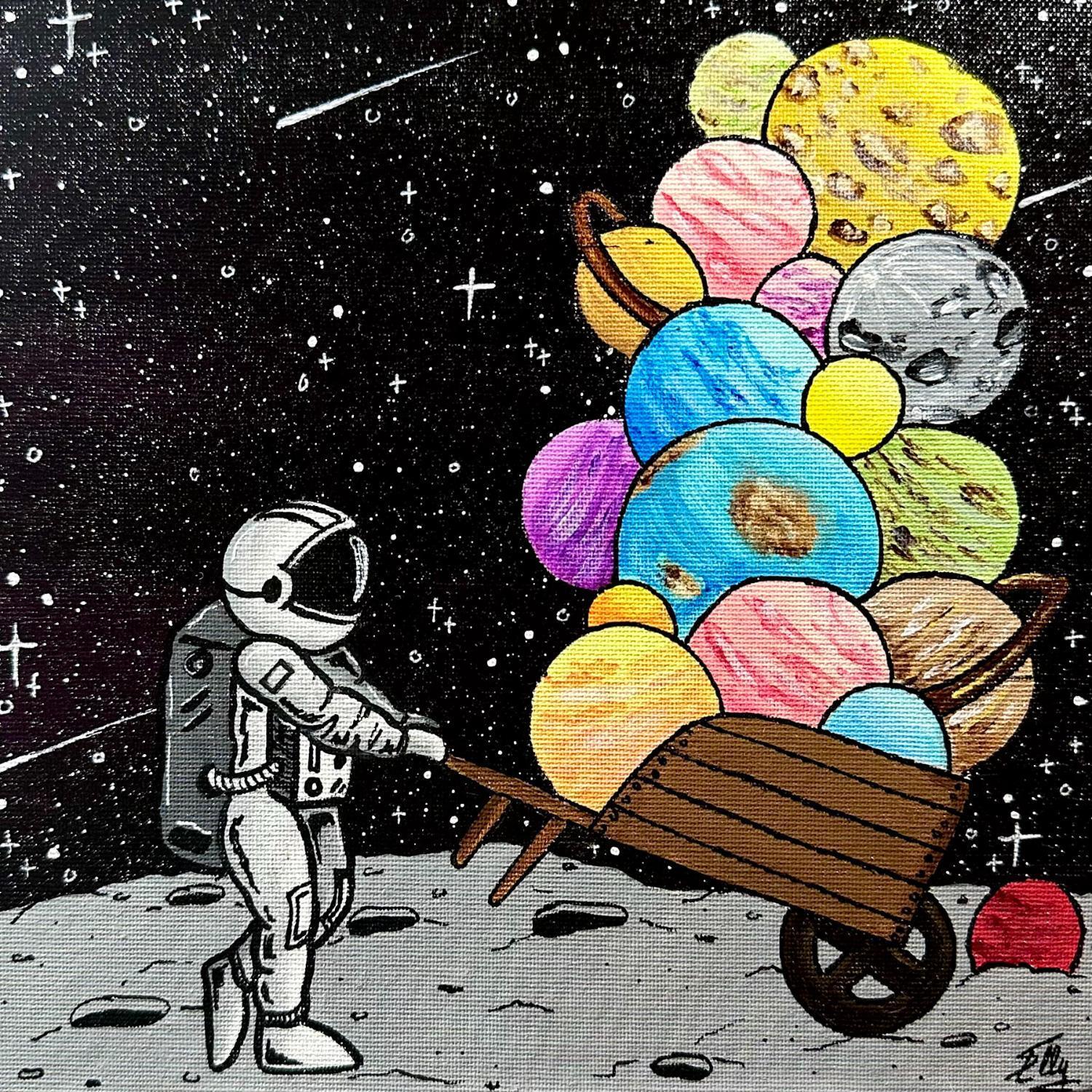 This unique and original contemporary artwork "Distribution de planète" was created by contemporary artist Elly.