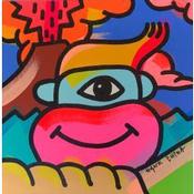 The artist used Acrylic, Posca media on Canvas to create this Pop-art, Small size painting.