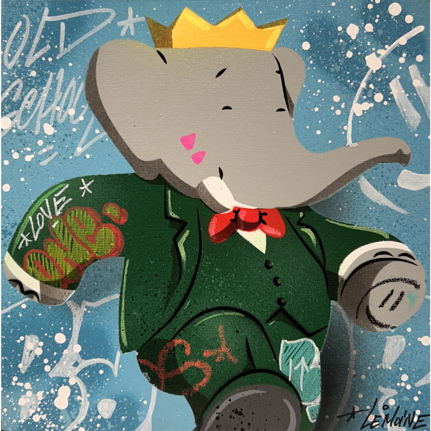 This unique and original contemporary artwork "Babar 2" on the subject of Pop icons has been created by the contemporary artist Lemoine Mael.