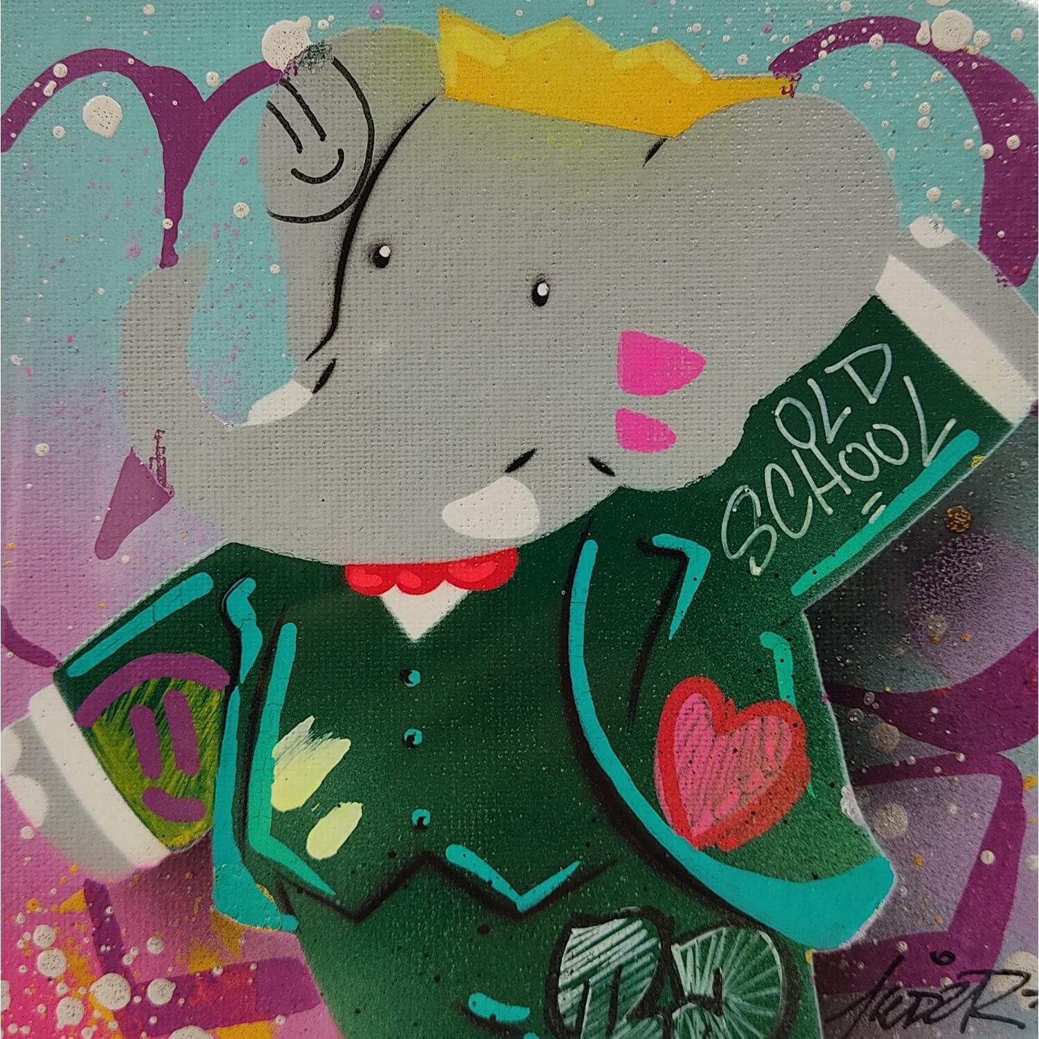 This unique and original contemporary artwork "Babar" on the subject of Pop icons has been created by the contemporary artist Lemoine Mael.