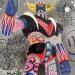 The artist used Acrylic, Graffiti media on Canvas board to create this Pop-art, Small size painting.