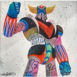 This unique and original contemporary artwork "Goldorak" on the subject of Pop icons has been created by the contemporary artist Lemoine Mael.