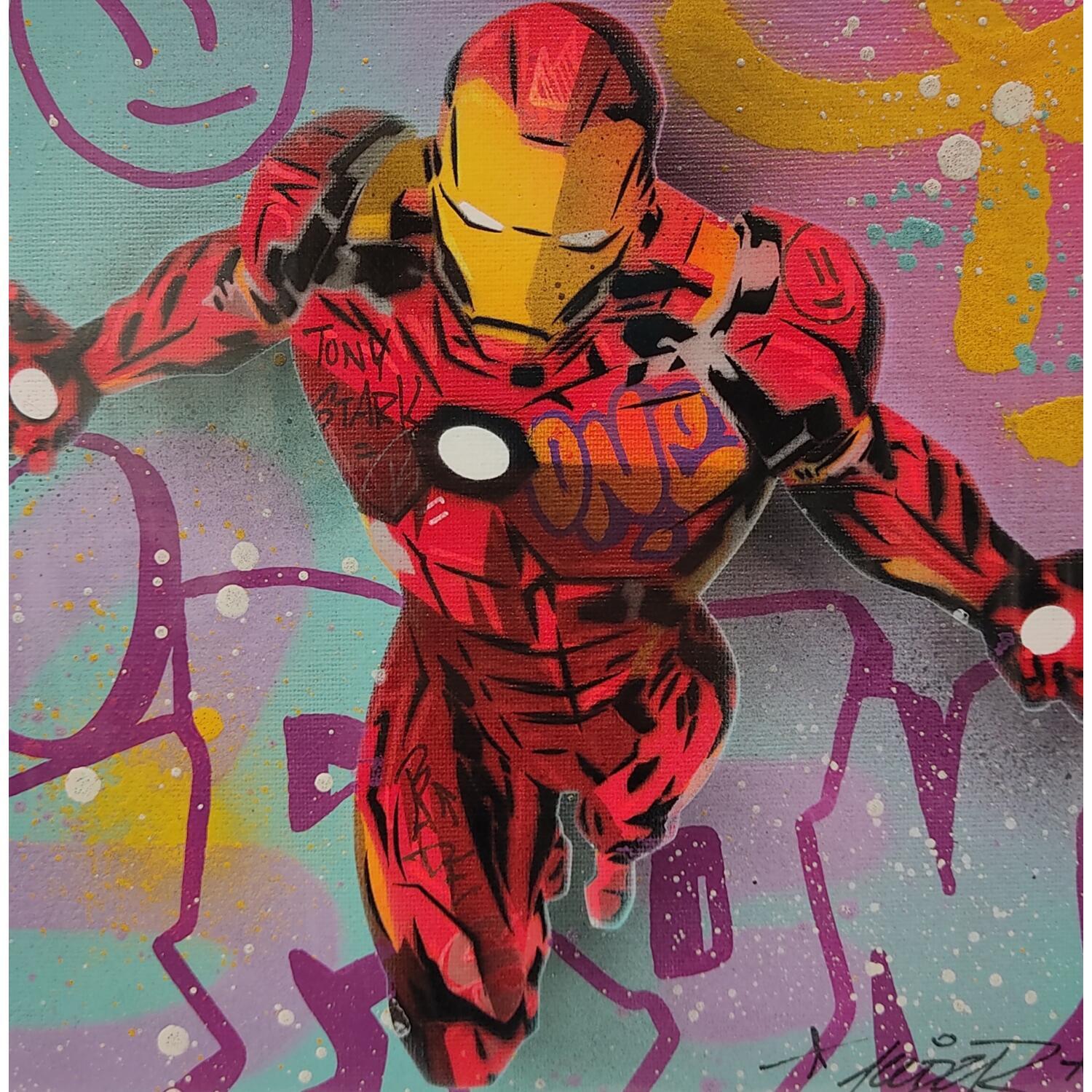 This unique and original contemporary artwork "Iron Man" on the subject of Pop icons has been created by the contemporary artist Lemoine Mael.