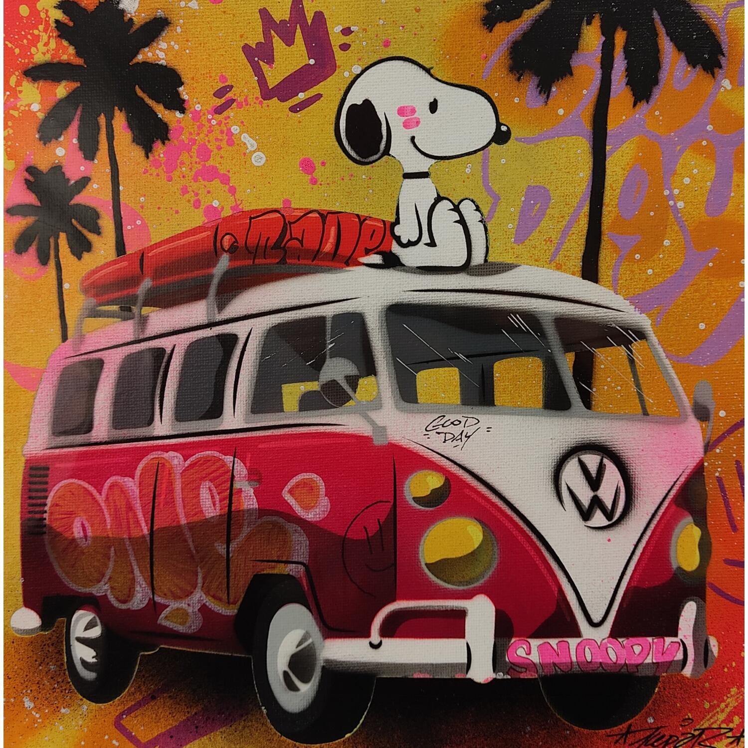 This unique and original contemporary artwork "Snoopy pop Surf" on the subject of Pop icons has been created by the contemporary artist Lemoine Mael.