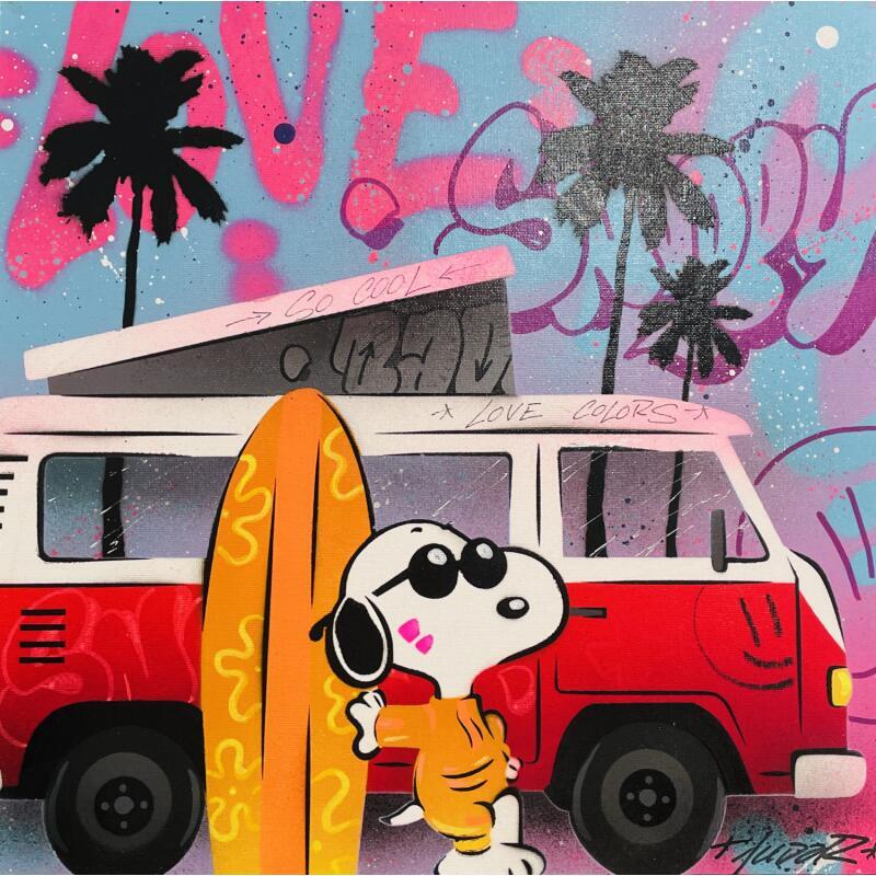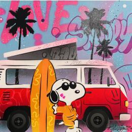 This unique and original contemporary artwork "Snoopy red Van" on the subject of Pop icons has been created by the contemporary artist Lemoine Mael.