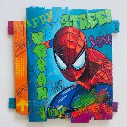 The artist used Acrylic, Wood, Posca media on Wood to create this Pop-art, Small size painting.