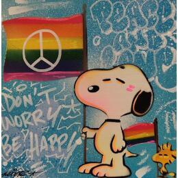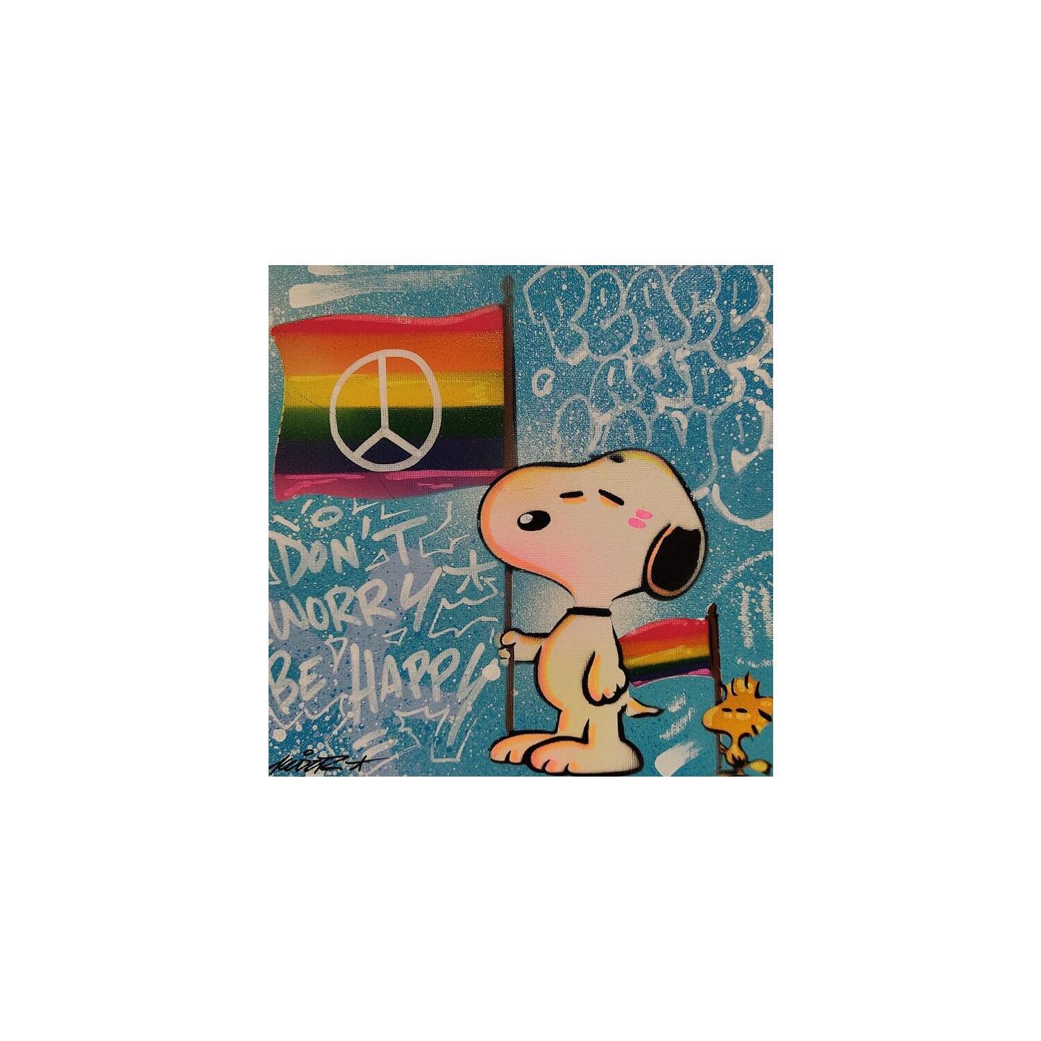This unique and original contemporary artwork "Snoopy Flag" on the subject of Pop icons has been created by the contemporary artist Lemoine Mael.