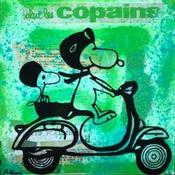 This unique and original contemporary artwork "Snoopy vespa" on the subject of Pop icons has been created by the contemporary artist Kikayou.