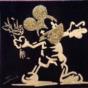 This unique and original contemporary artwork "MICKEY BANKSY IN GOLD" on the subject of Pop icons has been created by the contemporary artist Mestres Sergi.