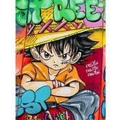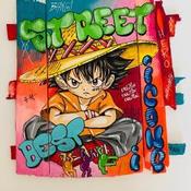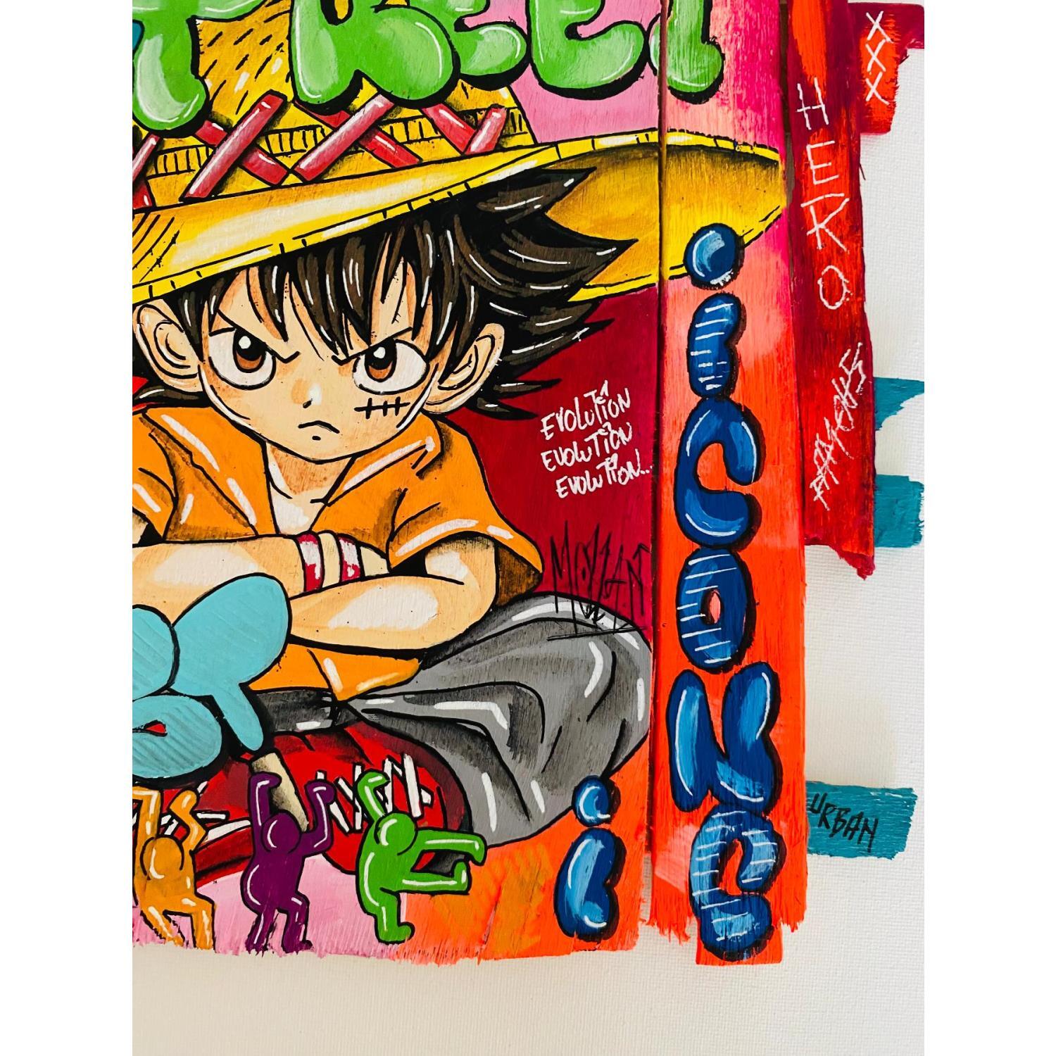 This unique and original contemporary artwork "HERO" on the subject of Pop icons has been created by the contemporary artist Molla Nathalie .