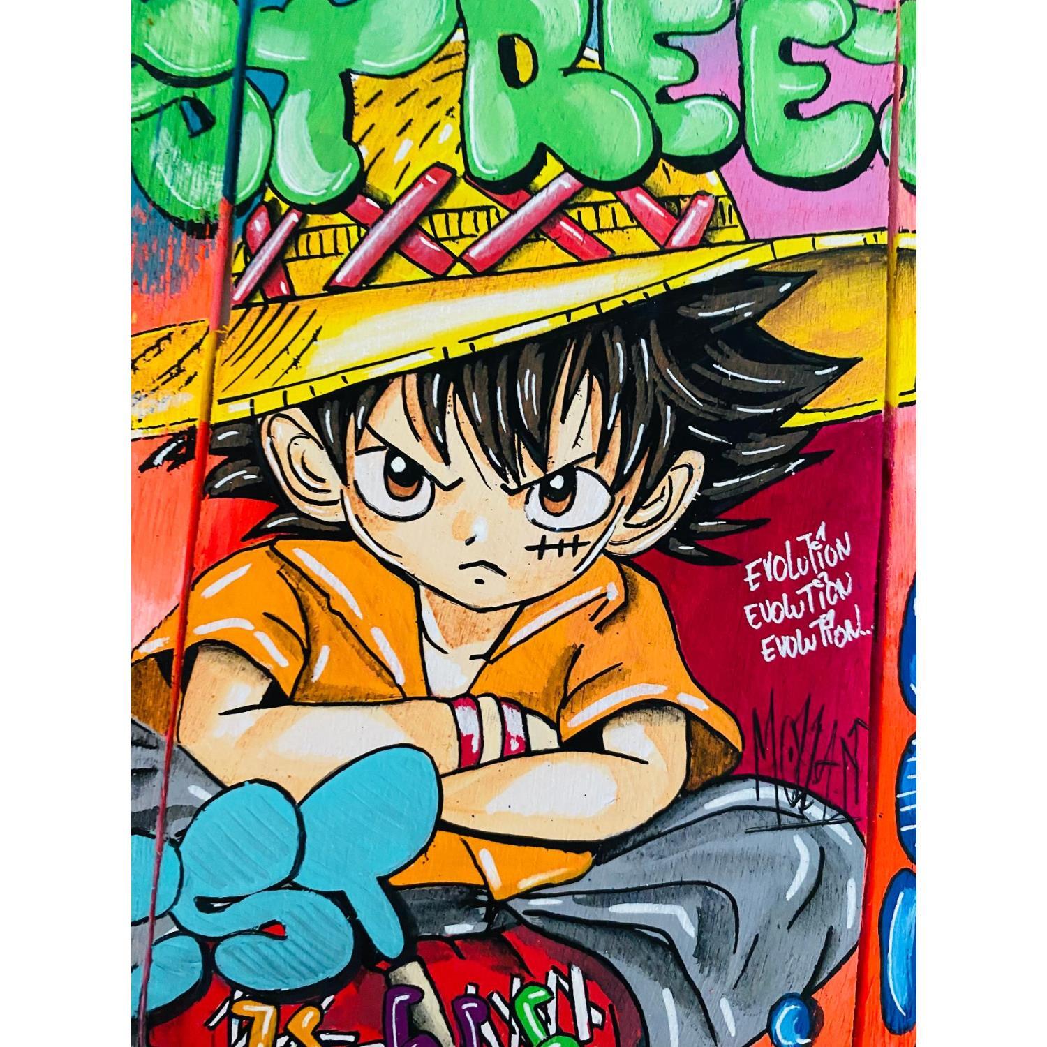 The artist used Posca, Wood, Acrylic media on Wood to create this Pop-art, Small size painting.