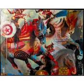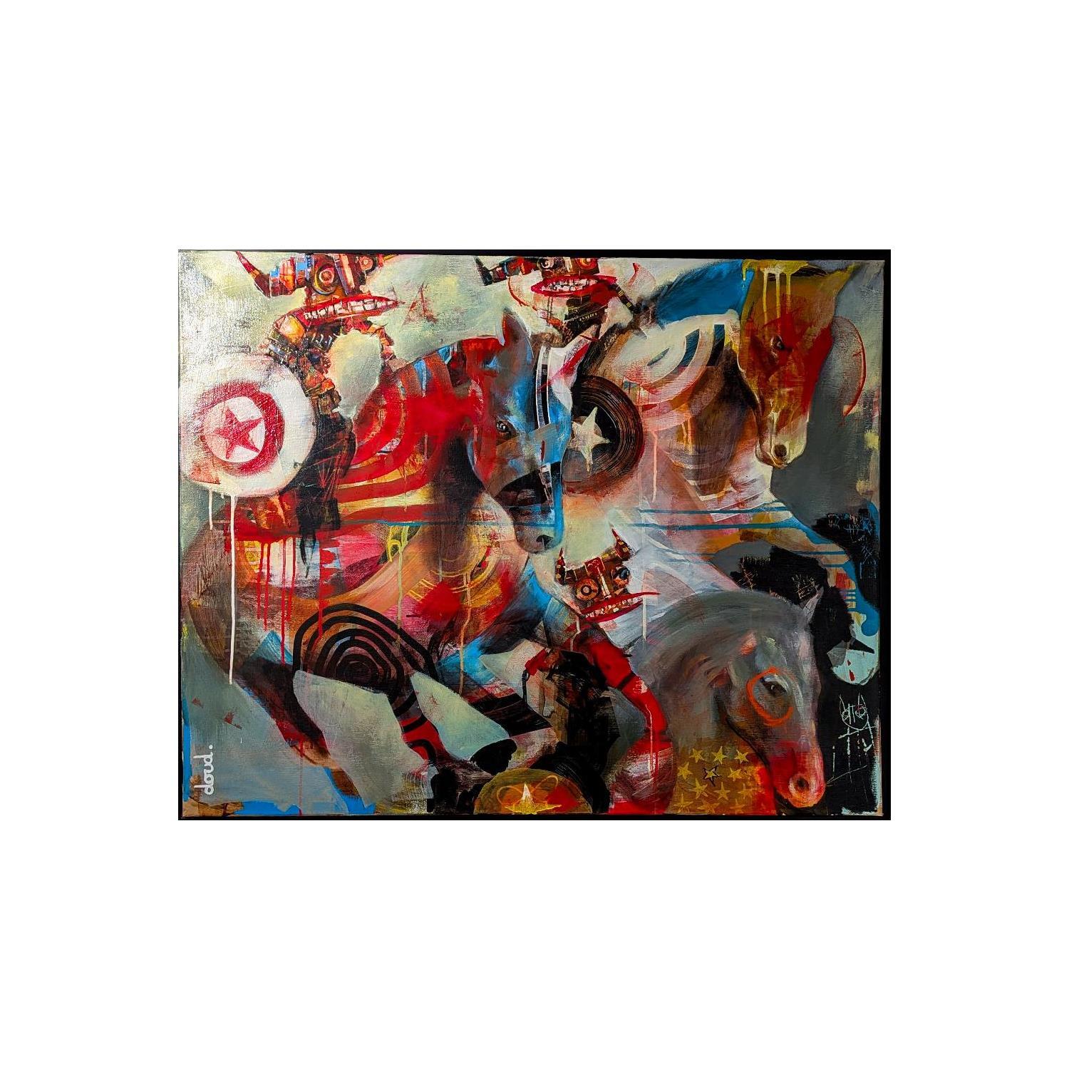 This unique and original contemporary artwork "Cavalerie étoilée" on the subjects of Animals, Sport has been created by the contemporary artist Doudoudidon.