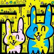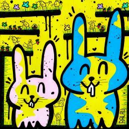 This unique and original contemporary artwork "Bunny star" on the subject of Animals has been created by the contemporary artist Ralau.