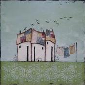 The artist used Acrylic, Gluing media on Canvas board to create this Raw art, Small size painting.