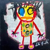The artist used Acrylic, Pastel, Posca media on Cardboard to create this Raw art, Small size painting.