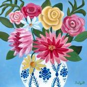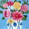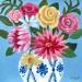 This unique and original contemporary artwork "F2 Roses and dahlia in a vase" was created by contemporary artist Sally B.