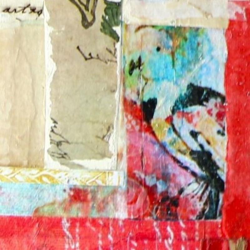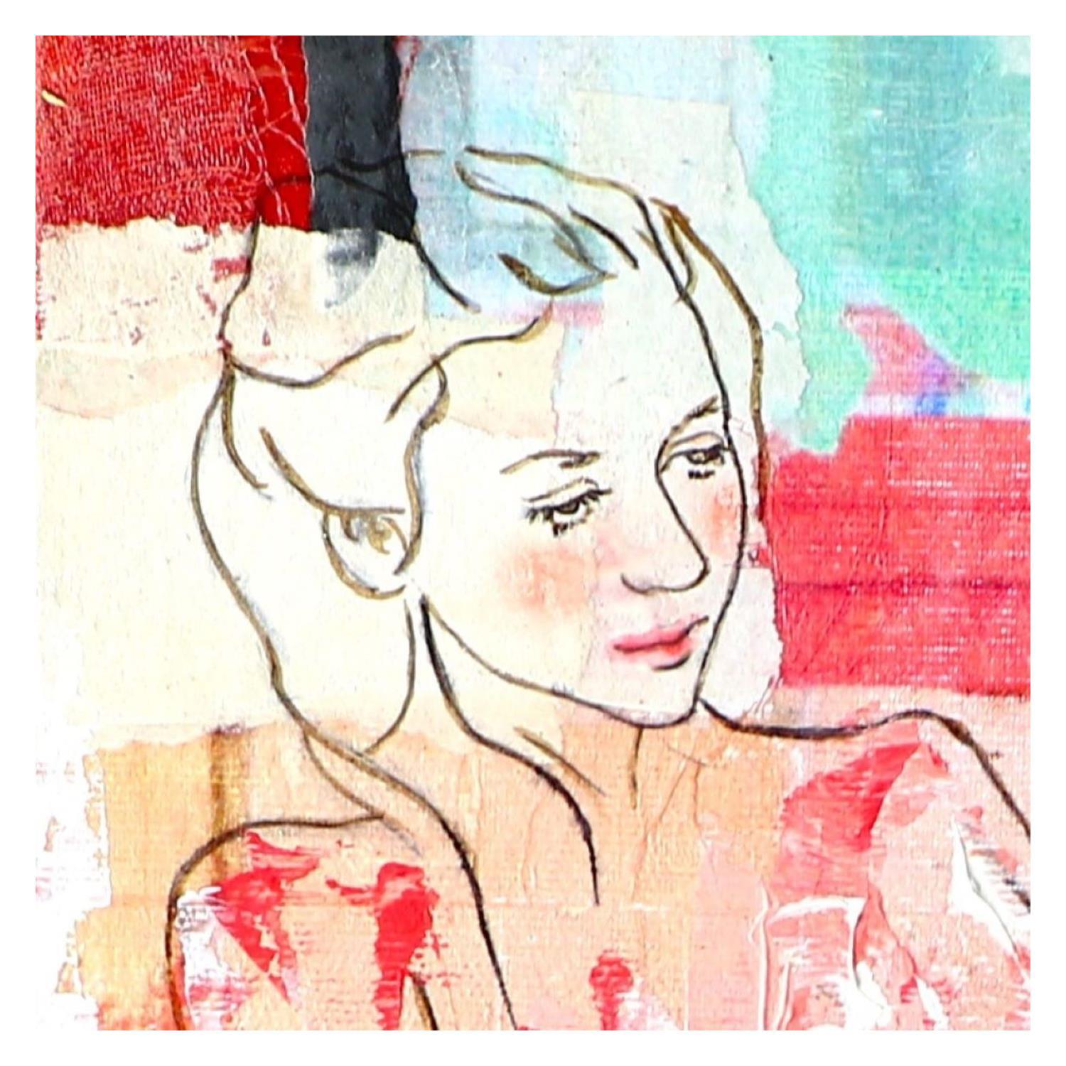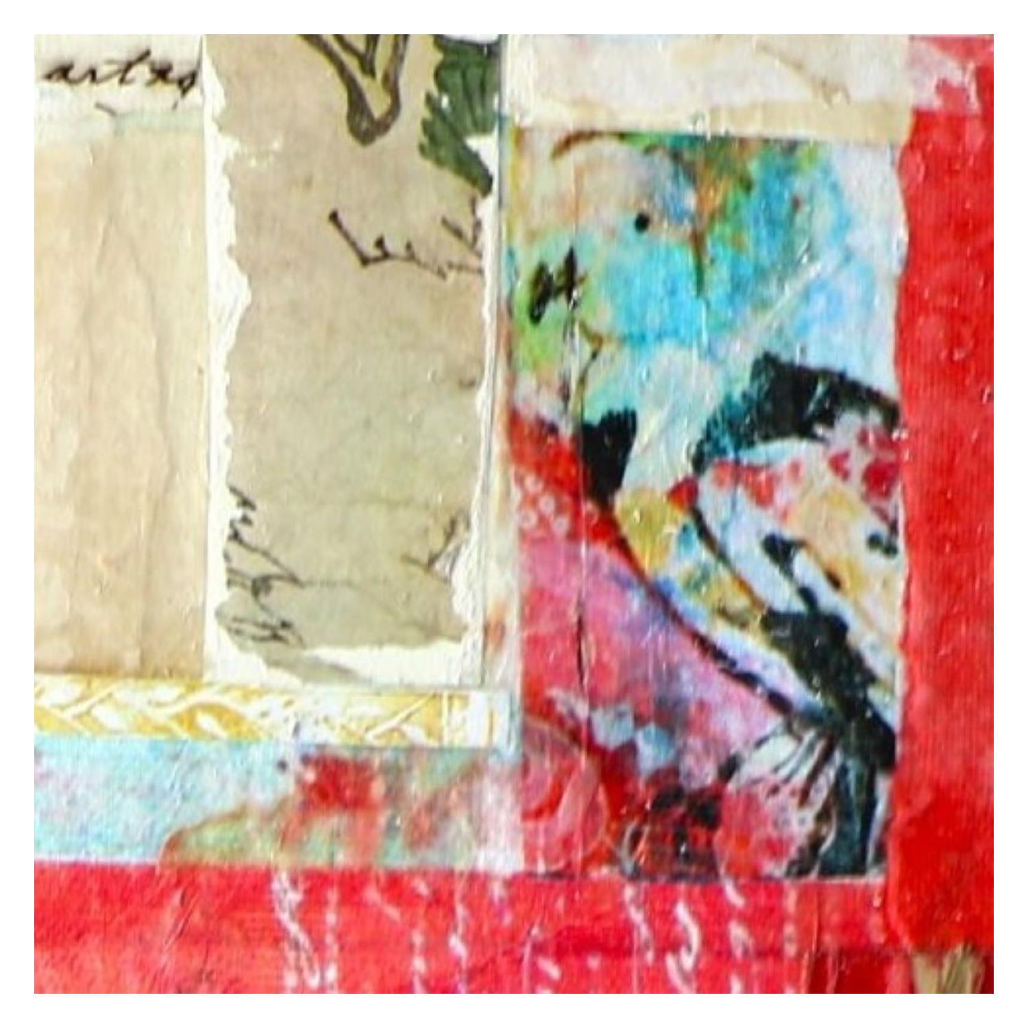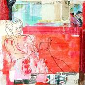 The artist used mixed media, Stamping, Ink, Acrylic, Collage d'art, Upcycling to create this small-format canvas on Wood Singular Art style painting on the theme Scenes of life.