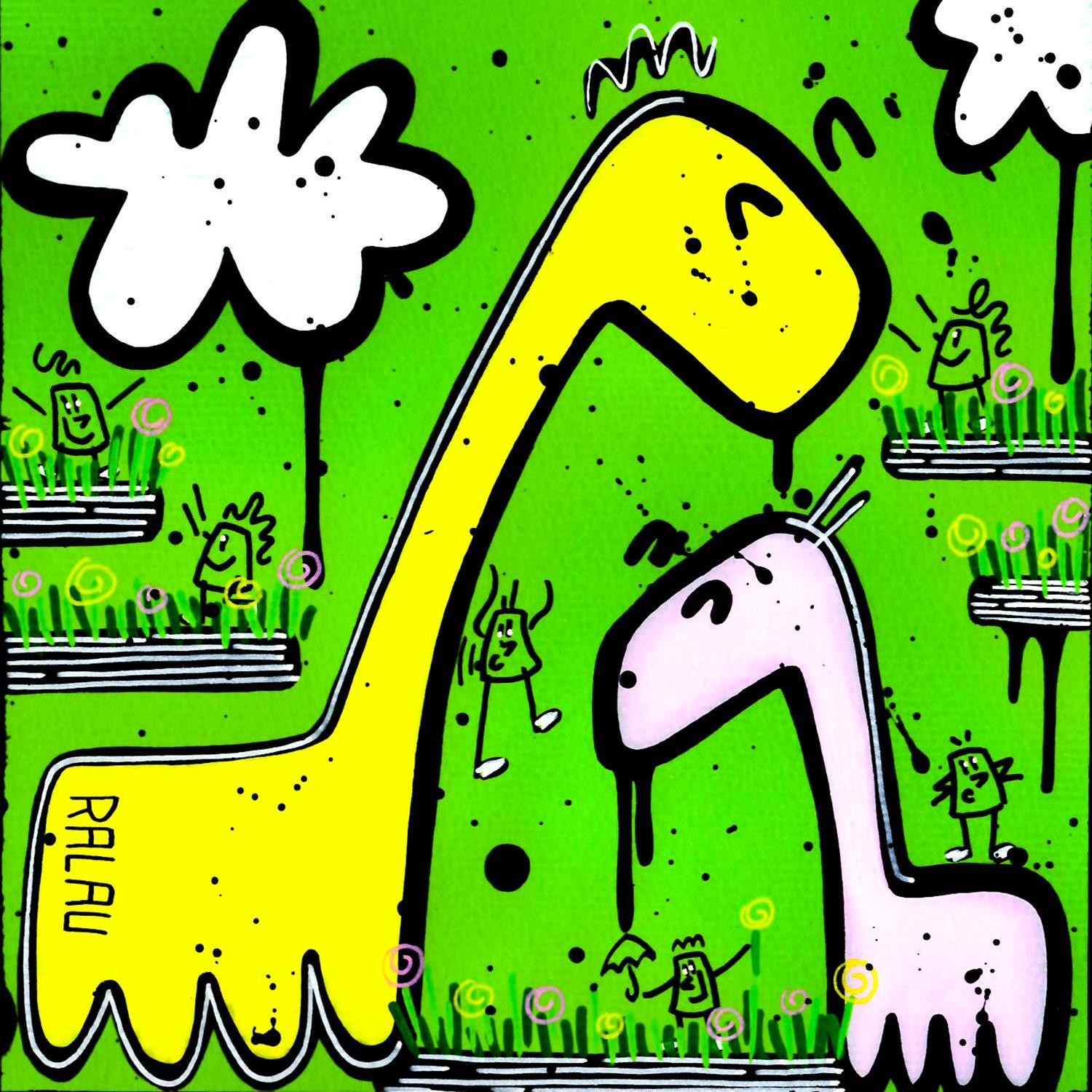 This unique and original contemporary artwork "Dinoland " on the subject of Animals has been created by the contemporary artist Ralau.