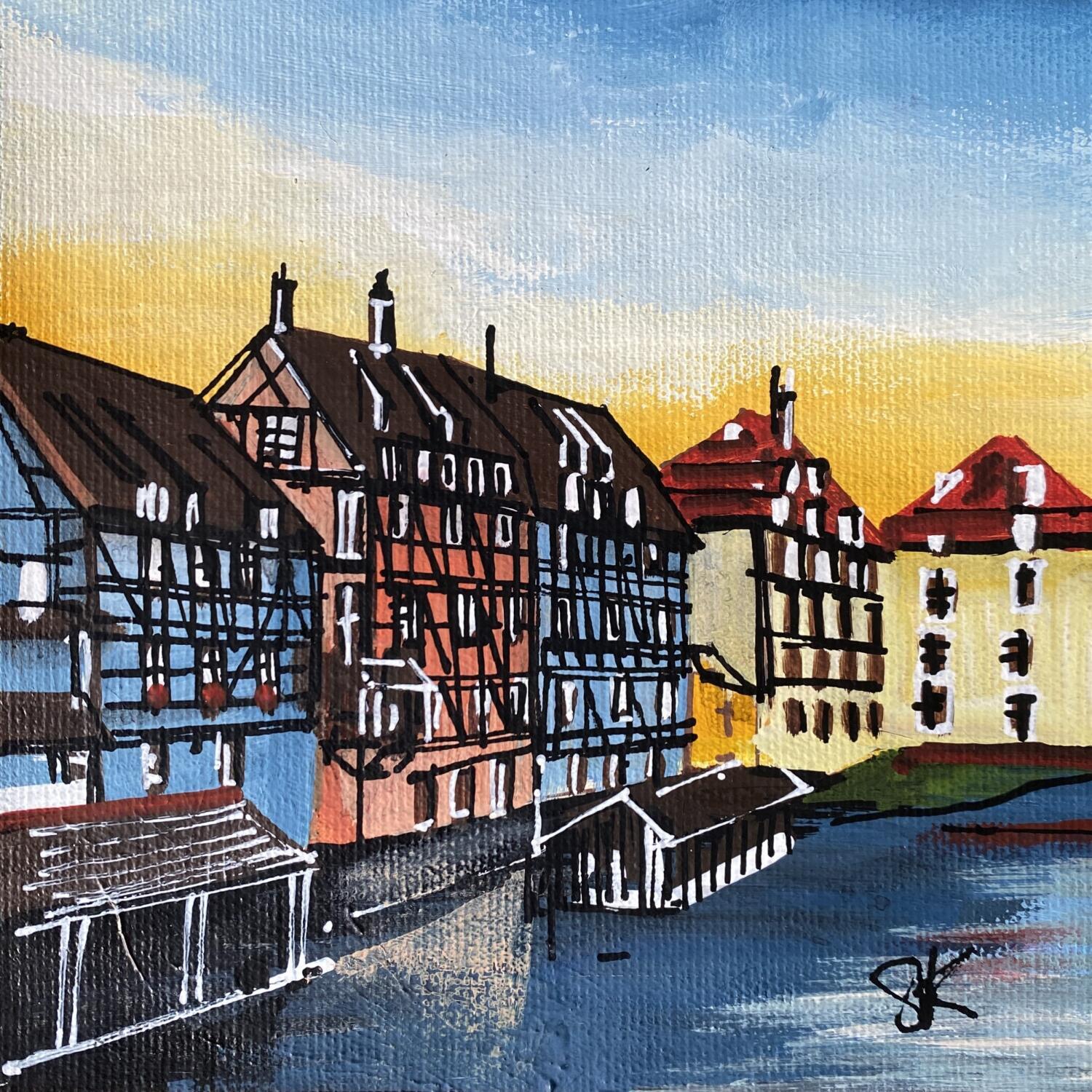 This unique and original contemporary artwork "Fin de journée sur le pont saint Martin" was created by contemporary artist Touras Sophie-Kim .