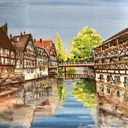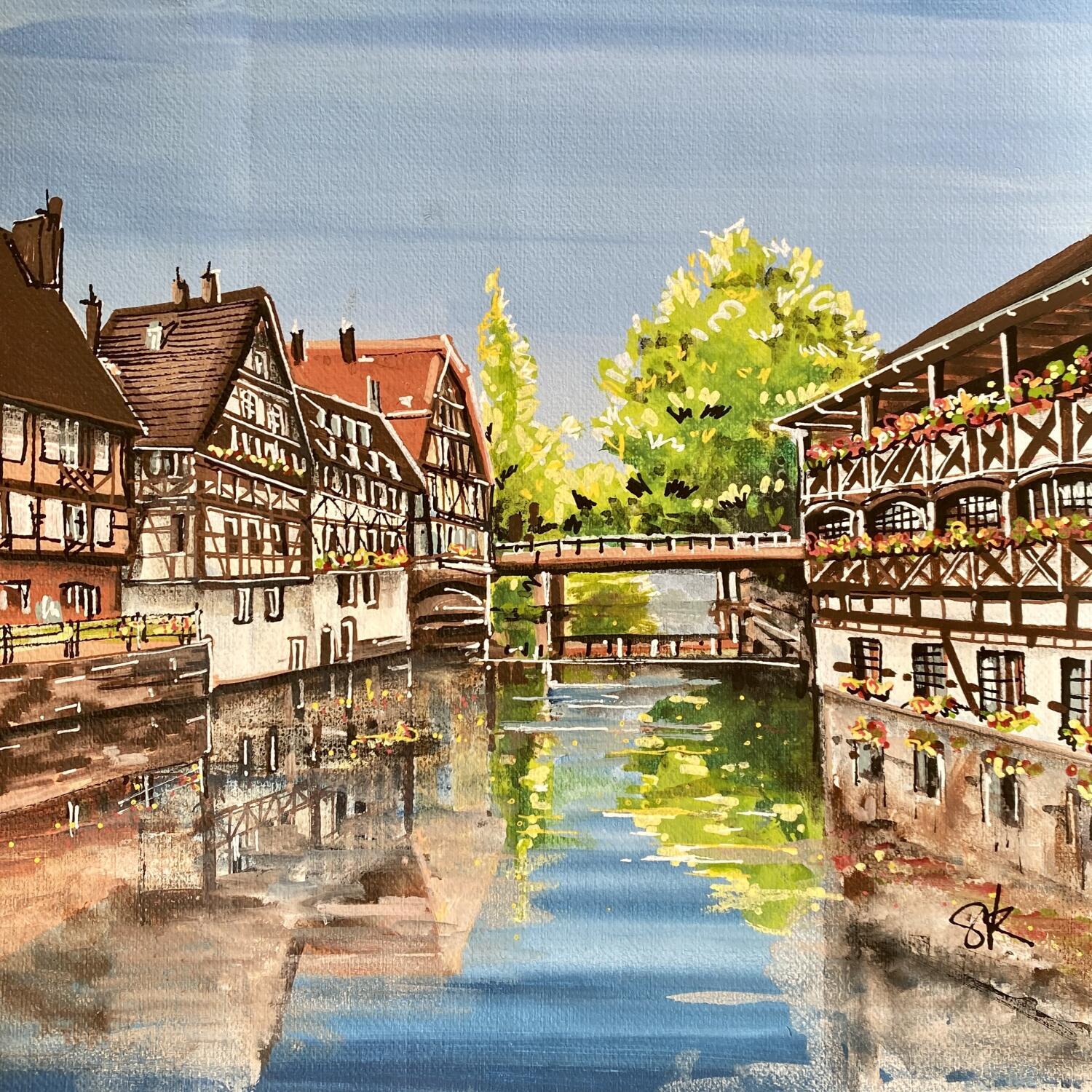 This unique and original contemporary work of art "passage de l'écluse sur la petite France." was created by contemporary artist Touras Sophie-Kim .