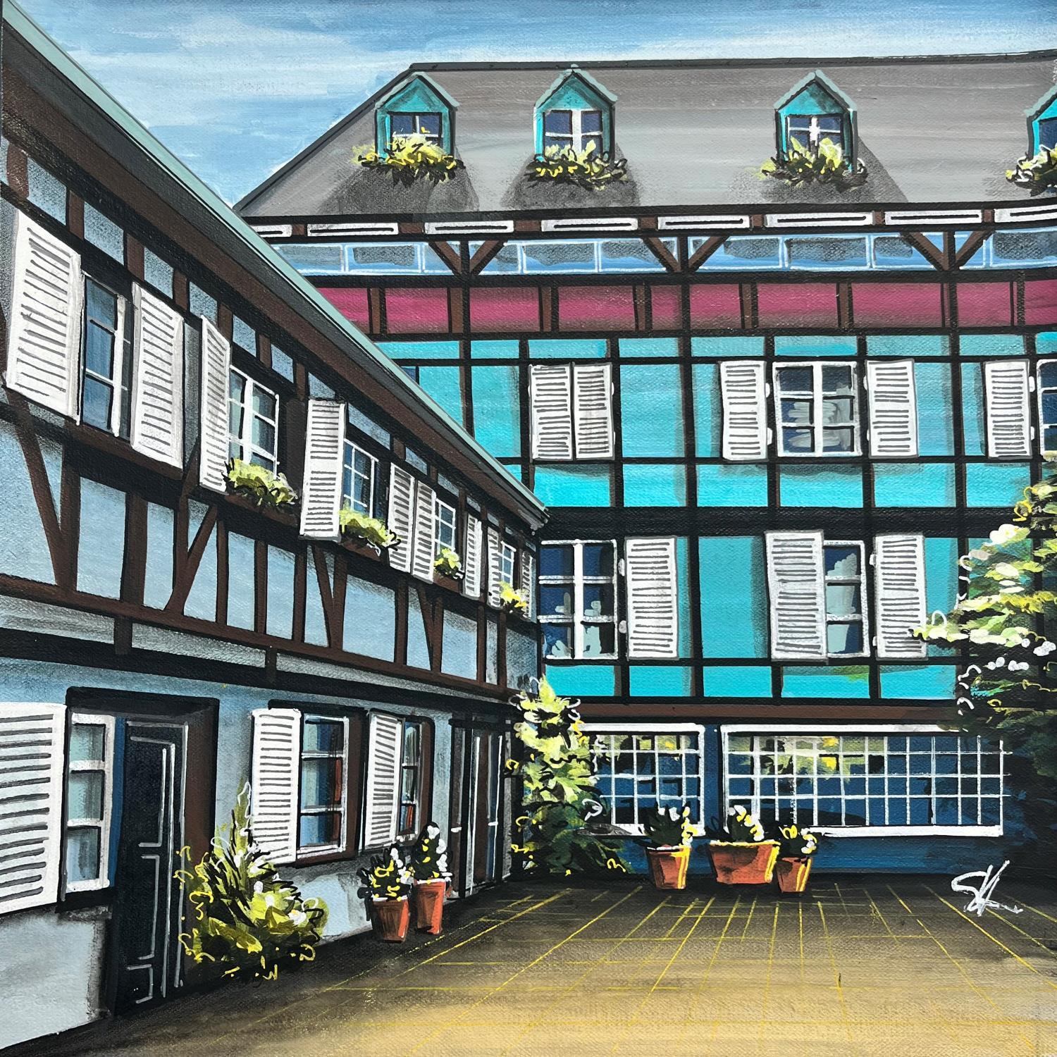 This unique and original contemporary artwork "Cour de la rue de la Madeleine à Strasbourg" on the subject of Still-life has been created by the contemporary artist Touras Sophie-Kim .