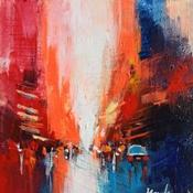 This unique and original contemporary artwork "Summer sunset" on the subjects of Urban, Architecture has been created by the contemporary artist Mande.