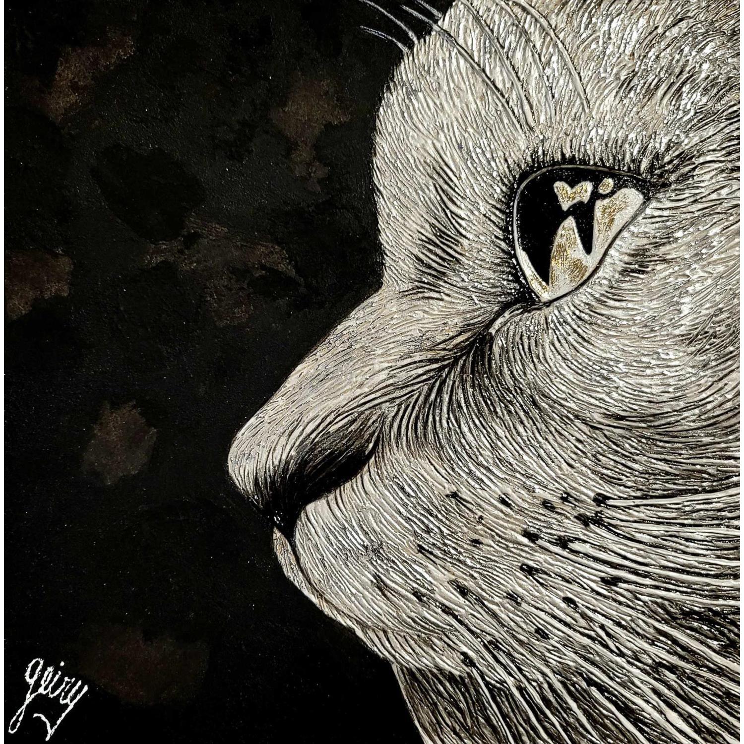 This unique and original contemporary artwork "Gato platecido" has been created by the contemporary artist Geiry.