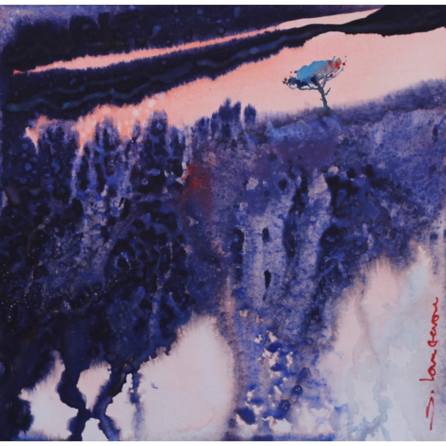Un pin sous un ciel roséPainting Un pin sous un ciel rosé by Langeron Stéphane | Painting Subject matter Watercolor