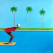 This unique and original contemporary artwork "Three palms and red suit" on the subjects of Architecture, Marine, Sport has been created by the contemporary artist Trevisan Carlo.