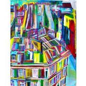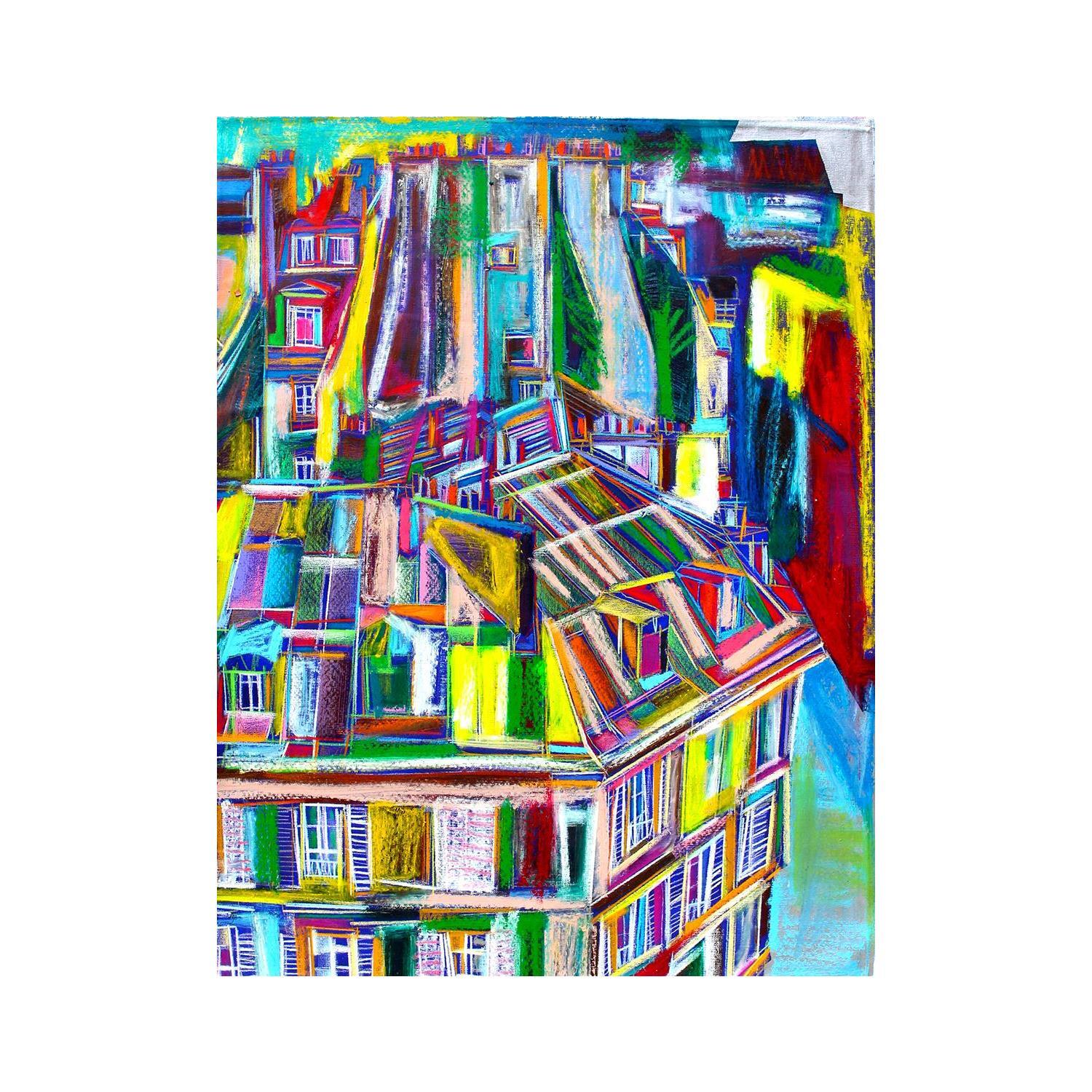 This unique and original contemporary artwork "Un boeuf sur le toit" on the subject of Urban has been created by the contemporary artist Anicet Olivier.