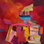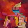 The artist used Acrylic, Cardboard, Gluing, Gold leaf, Pastel media on Cardboard to create this Abstract, Small size painting.