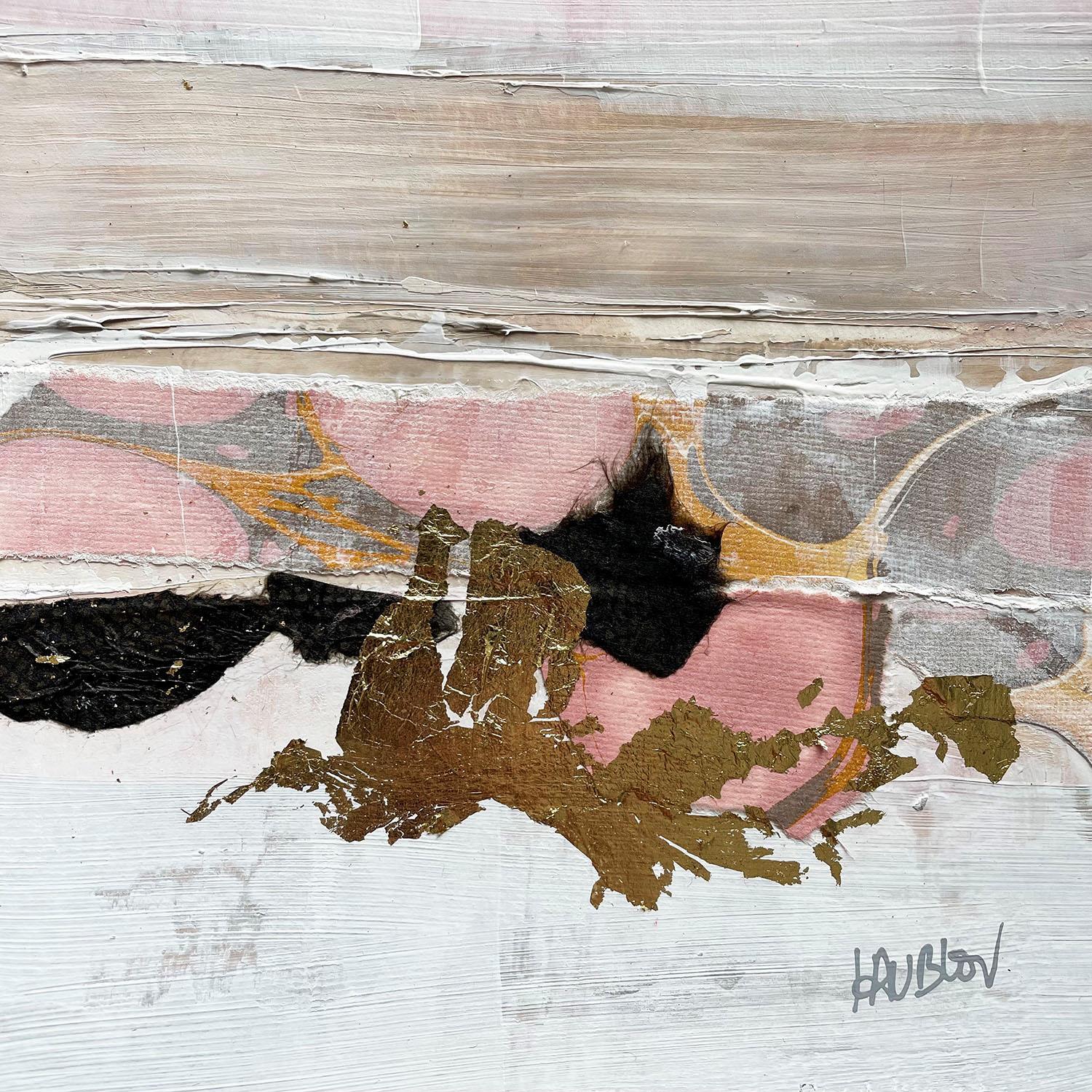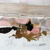 The artist used Acrylic, Cardboard, Gluing, Gold leaf media on Cardboard to create this Abstract, Small size painting.