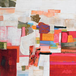 The artist used Gluing, Gold leaf, Pastel, Acrylic media on Canvas to create this Abstract, Large size painting.