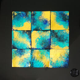 The artist used Gluing medium on Dibon to create this Abstract, Small size painting.