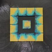 The artist used Gluing medium on Dibon to create this Abstract, Small size painting.