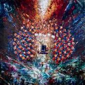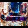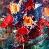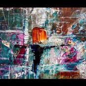 Le concert avec pianiste is a work that oscillates between abstraction in the periphery and naive art in the center and the representation of the instrumentalists. The motif is painted in knife and oil, and plays on a harmony of warm colors (shades of red, orange) and metallics (gold, copper, silver...). The square heads of the figures are inspired by Nicolas de Staël's "Parc des Princes" series. The staging highlights the central pianist, playing on circularity (the formation) and verticality (the background). The conductor, isolated and in a masterly posture, concludes the lower part of the work. The overall tone is flamboyant or baroque... depending on one's sensibilities.
