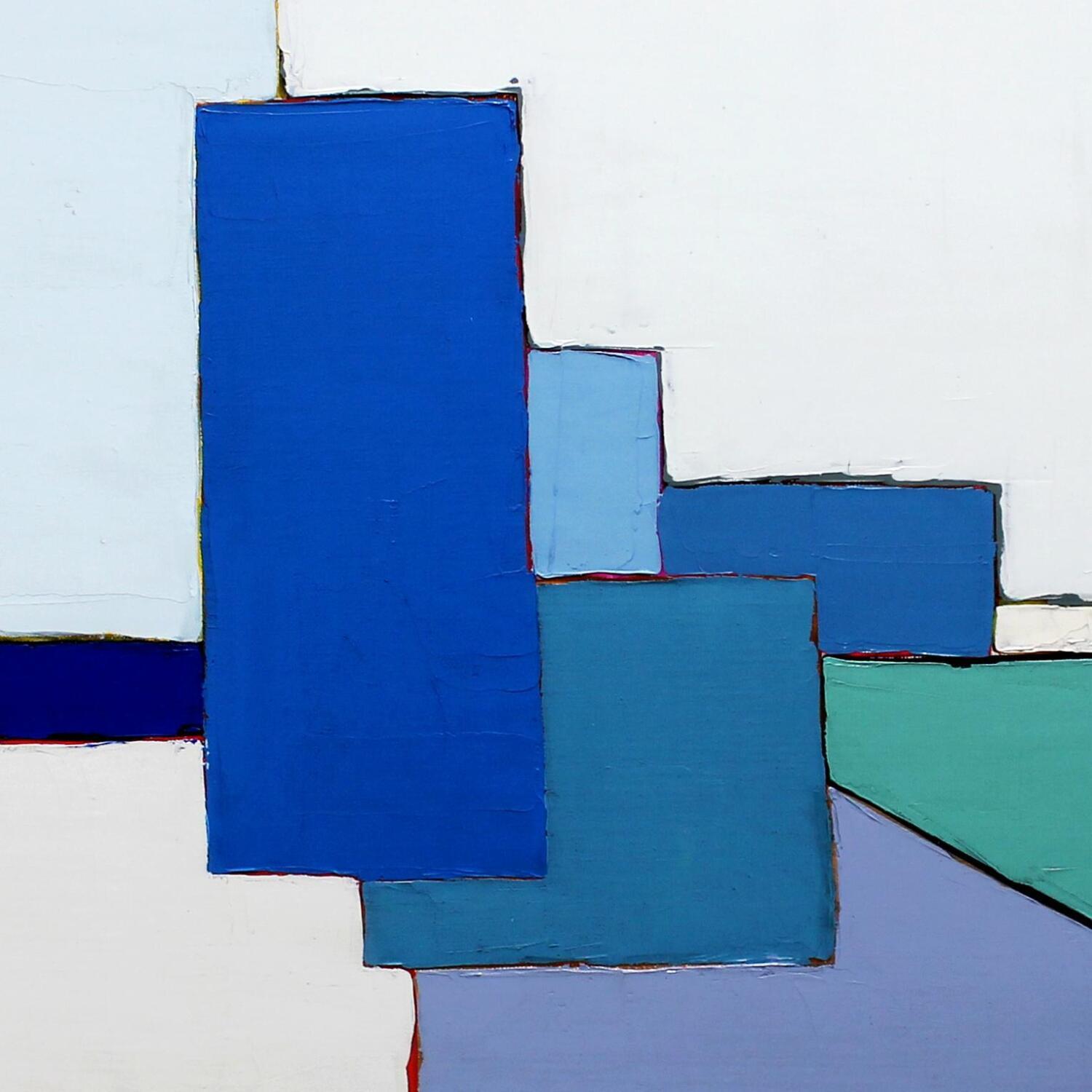 In the language of color, the blue hues evoke celestial and maritime immensity. The abstract geometric style of this work draws the eye towards infinity. The work on colors, their harmonies and rhythms adds depth to the painting, bringing calm and serenity to any interior.