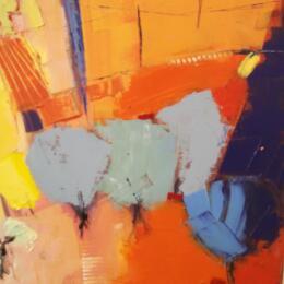 The artist used Oil medium on Canvas to create this Abstract, Large size painting.