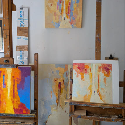 The artist used Oil medium on Paper to create this Abstract, Small size painting.
