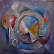 The artist used Oil medium on Canvas to create this Abstract, Small size painting.