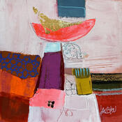The artist used Pastel, Acrylic, Cardboard, Gluing, Gold leaf media on Canvas to create this Abstract, Small size painting.