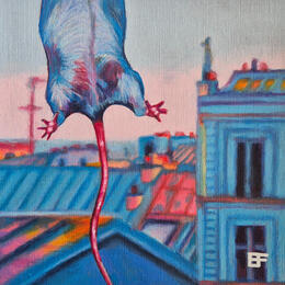 The artist used acrylics to create this small-scale figurative painting on paper.