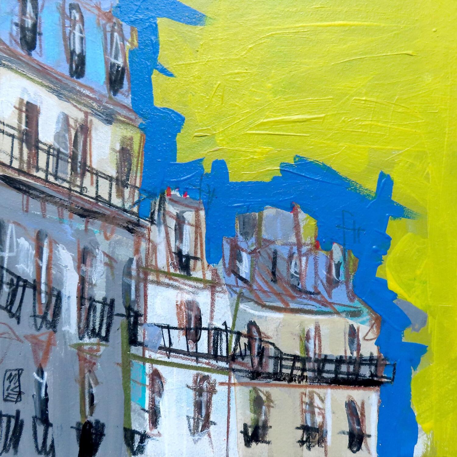 Painting La parole est au ciel part 1 by Anicet Olivier | Painting Figurative Urban Architecture Acrylic Pastel